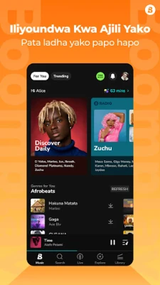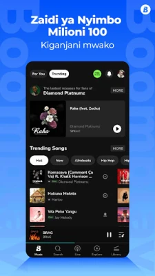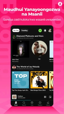 Kutana na ulimwengu wako mpya wa muziki! Boomplay inakuletea hazina isiyo na kifani ya nyimbo zaidi ya milioni 100, ikijumuisha vibao vipya zaidi vya Kiafrika na kazi bora za kimataifa. Kuanzia midundo ya kuvutia ya Bongo Flava, Singeli na Afrobeats hadi miondoko ya R&B, Hip Hop, na Amapiano, Boomplay imekufikia. Furahia uzoefu wa muziki ulioundwa mahsusi kwako, ambapo mapendekezo mahiri yanajua ladha yako vizuri na kukusaidia kugundua wasanii na nyimbo utakazopenda kabla hujazijua.