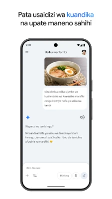 Kwa kutumia Gemini, mawazo yako yanageuka kuwa ukweli kupitia Canvas, uwanja wa ubunifu ambapo unaweza kuunda mifumo ya programu, michezo ya kuvutia, kurasa za wavuti, michoro ya kina, na hata muhtasari wa sauti. Panua uzoefu wako kwa kuunganisha kwa urahisi programu zako uzipendazo za Google, ikiwemo Tafuta, YouTube, Ramani za Google, na Gmail, na kufanya Gemini kuwa kitovu chako cha tija. Iwe unataka kusoma mada mpya kwa ustadi kupitia uundaji wa maswali na kadi za kufundishia, kubadilisha faili yoyote kuwa podikasti inayoweza kusikilizwa, au kupanga safari zako kwa urahisi na haraka, Gemini imekushughulikia. Unaweza pia kubuni na kuhariri picha za kupendeza kwa kutumia Google AI, kwa kutumia vidokezo vya maneno machache tu, huku kipengele cha Nano Banana Pro kilichojumuishwa katika Gemini kikikuwezesha kuunda miundo tata na mabango yenye maandishi yanayovutia.