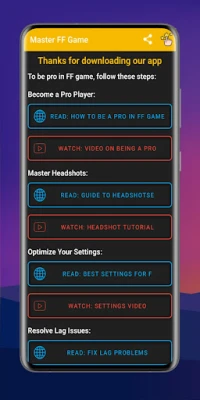 Weka Settings hakuishii tu kwenye kutoa mipangilio; inakuelekeza jinsi ya kutawala kikamilifu mchezo wa FF. Kupitia mwongozo wake wa kina, utajifunza mbinu bora za kutumia mipangilio hii kwa manufaa yako, ukigeuza ujuzi wako wa kucheza kutoka wa wastani hadi wa kiwango cha juu. Hii inakupa fursa ya kuongeza utendaji wako, kufanya maamuzi ya haraka, na hatimaye kufikia kiwango cha ustadi ambacho umekuwa ukikitamani. Ni programu muhimu kwa kila mchezaji anayetafuta makali ya ushindi na uzoefu wa michezo usio na dosari.